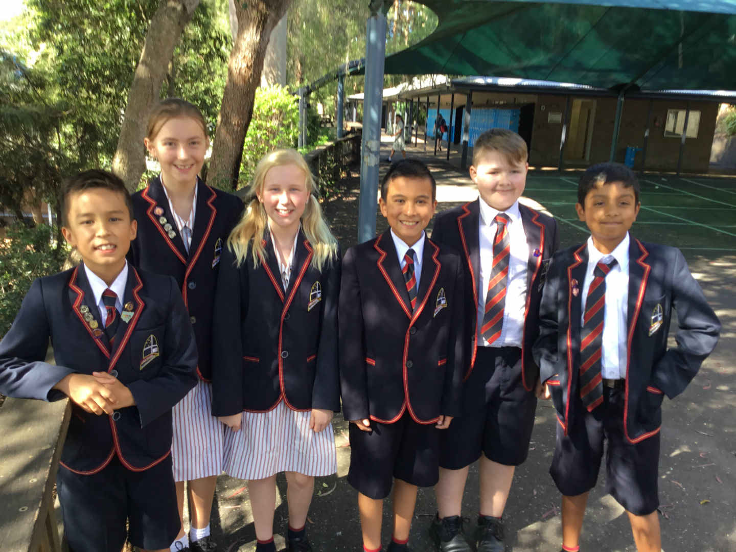 School Prefects: Lincoln Senior, Naomi Palibino, Mya McDonald, Brooke Scott, Cameron Wong